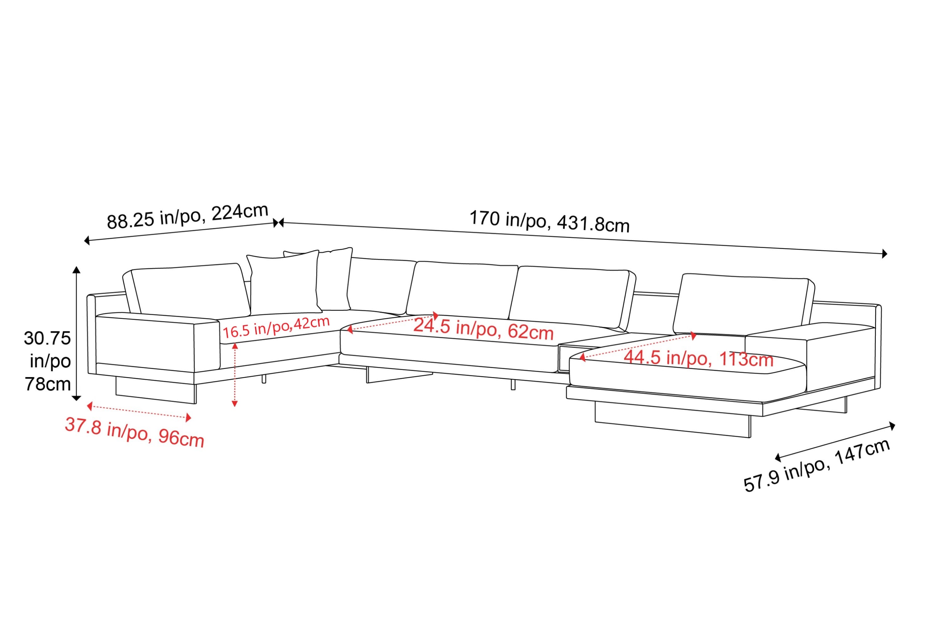 El sofá seccional Alessandro cuenta con patas de acero inoxidable, que brindan un soporte robusto y un estilo moderno. Estas patas duraderas aseguran estabilidad y complementan perfectamente el diseño de lujo del sofá. |