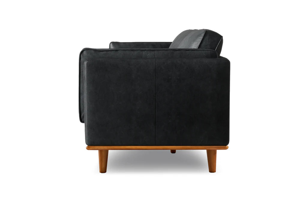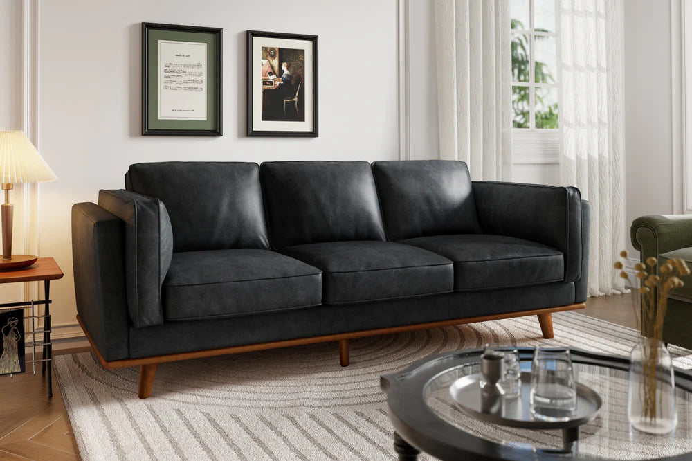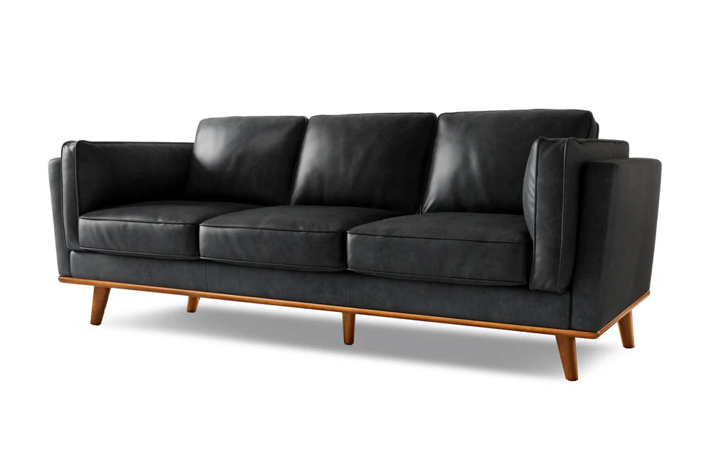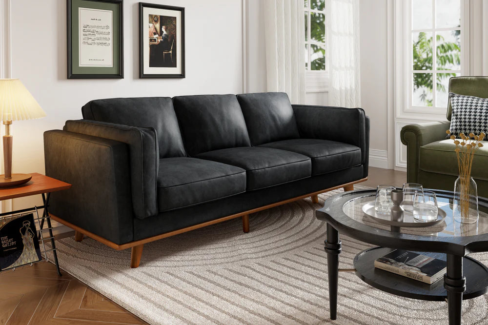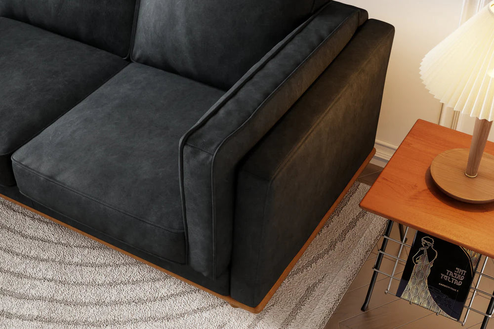 Experimenta la fusión perfecta del diseño moderno con nuestra Colección de Cuero Artesanal. El sofá de cuero Artesanal de ancho extra con base de madera de roble complementa sin esfuerzo cualquier espacio de vida gracias a su diseño de primera calidad. Su estética moderna y minimalista trasciende las tendencias, creando un aspecto atemporal que solo se vuelve más cautivador con el tiempo. El rico y cálido color negro complementado con patas de alder atraerá la atención de cualquiera que contemple su belleza y se siente en sus divinos cojines de espuma de alta resiliencia. Convierte tu hogar en una obra maestra atemporal con el Sofá de Cuero Artesanal de Ancho Extra.