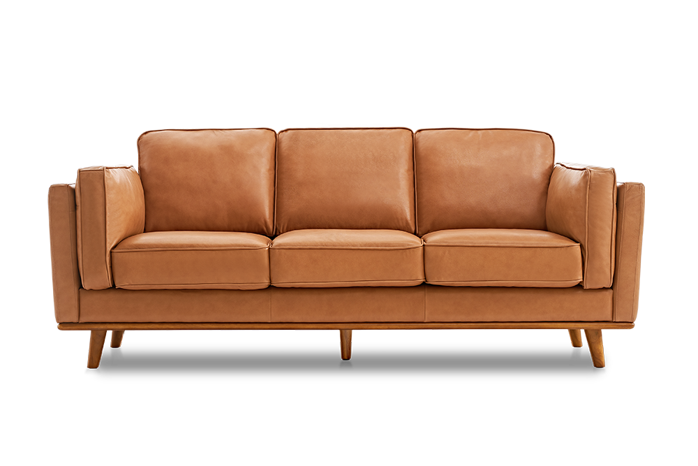 Configura e instala sin problemas tu nueva pieza destacada al unir las patas de madera al cuerpo del marco antes de relajarte y sumergirte en la felicidad con el Sofá de Cuero Artesanal de Ancho Extra. |