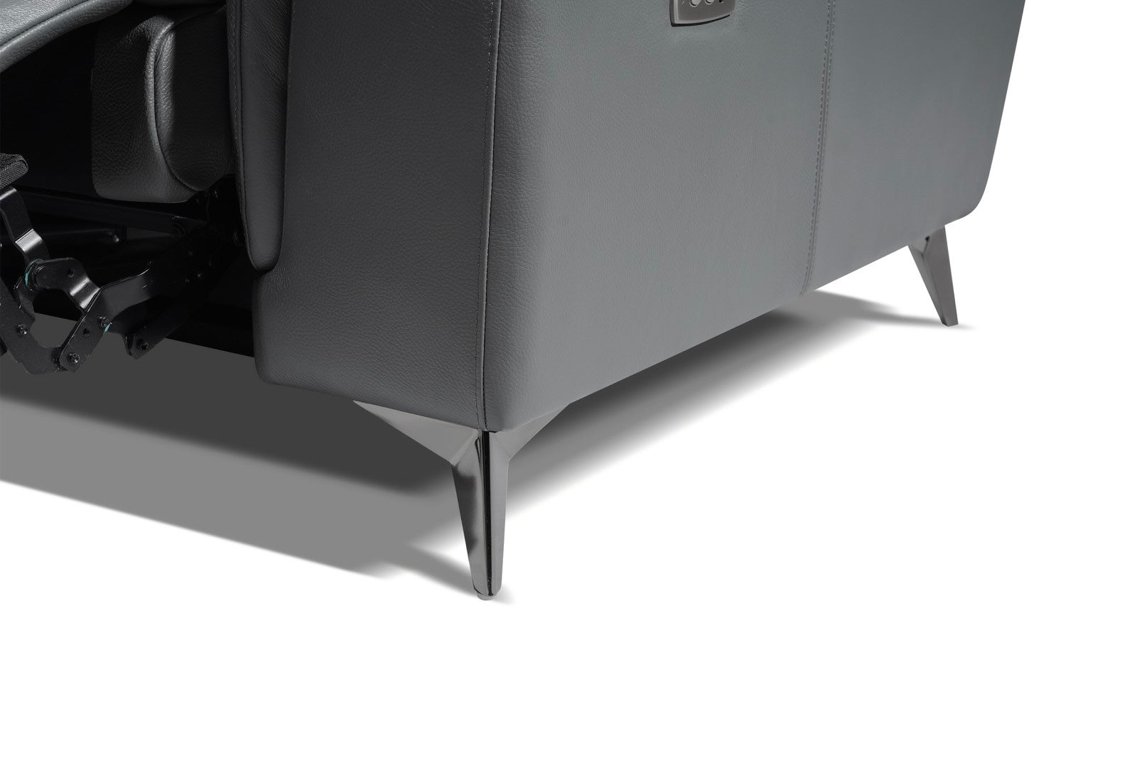 The power reclining seat is built on the high-quality Leggett & Platt mechanism which allows for you to kick back on your Italian leather sofa with the touch of a button which also has USB ports built right in. |